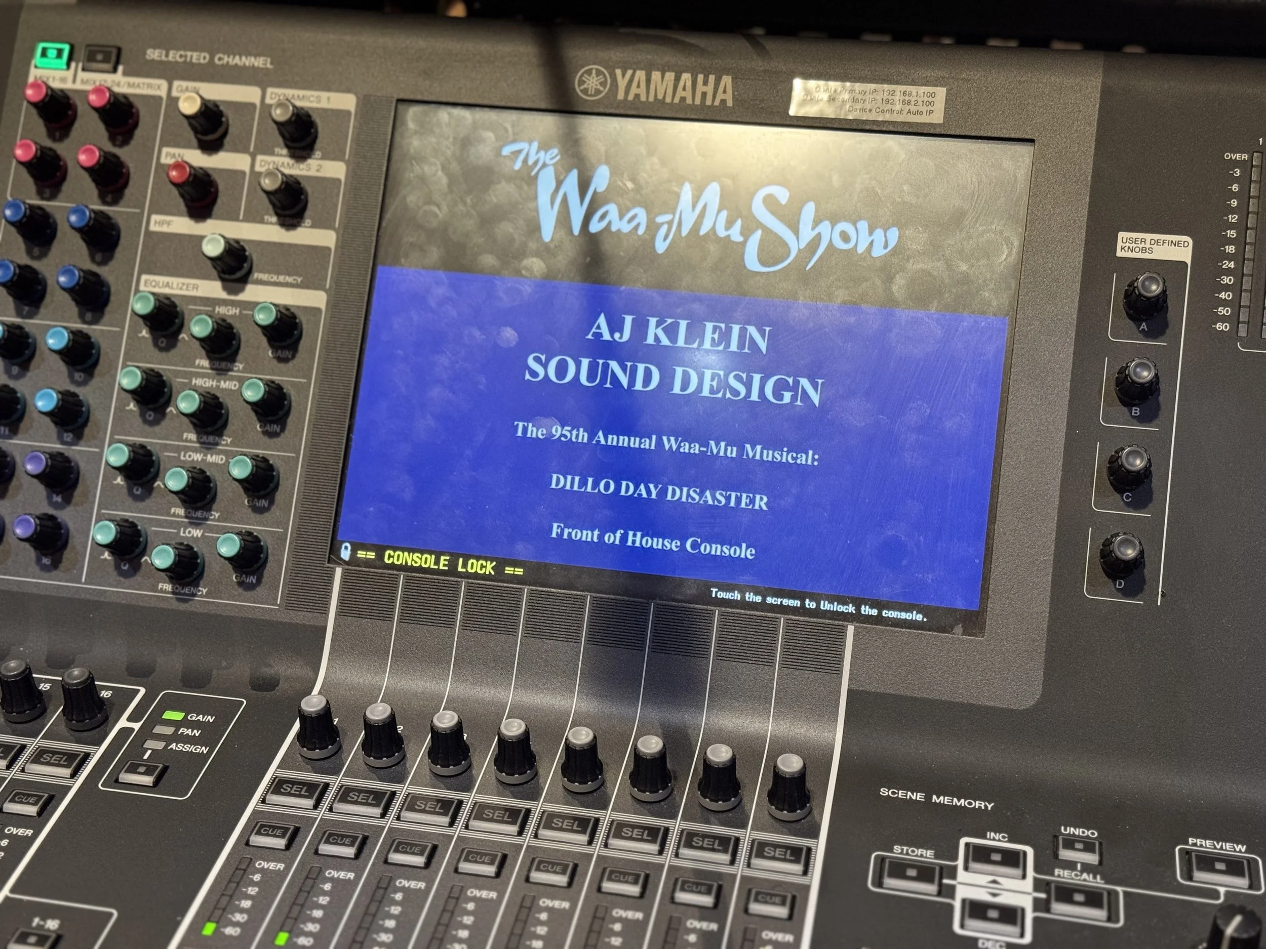 As an A1 and sound designer for live musicals, my job is to activate empathy and excitement through my technical and creative background in audio. I want to build bridges and advance the frontier of acoustic communication through emotional attunement, technical mastery, and administrative responsibility.